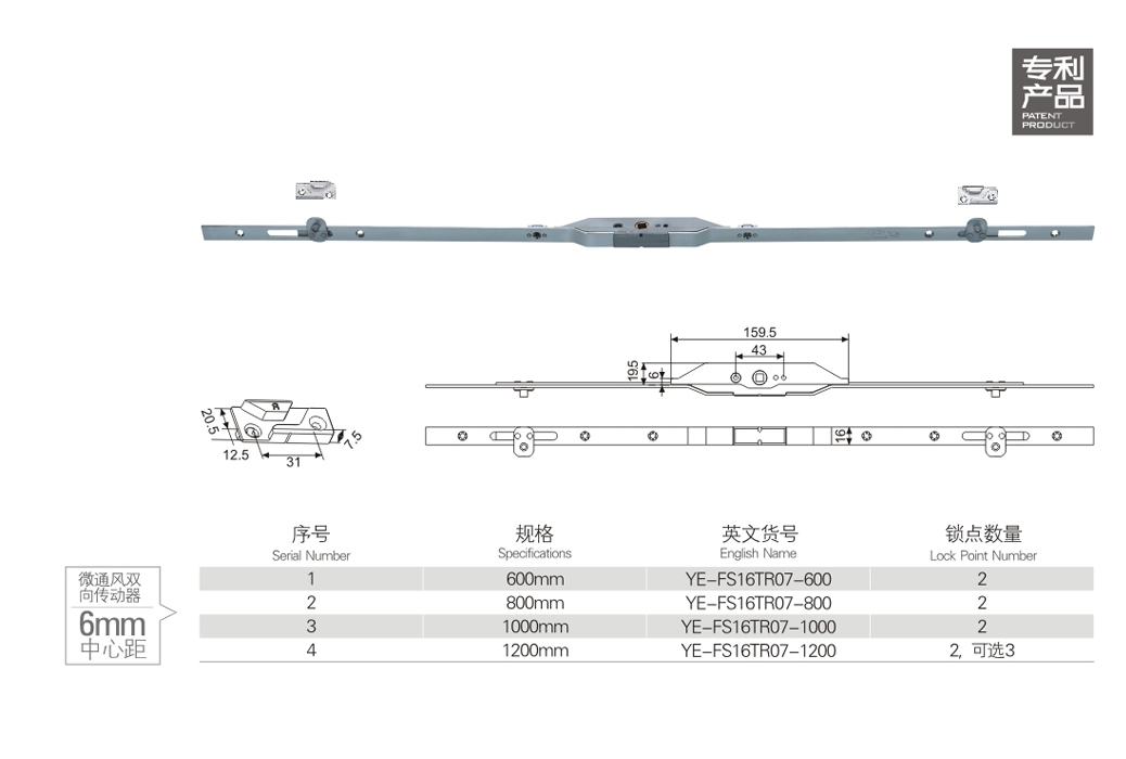 6 mm centre distance of micro-ventilated bidirectional drive